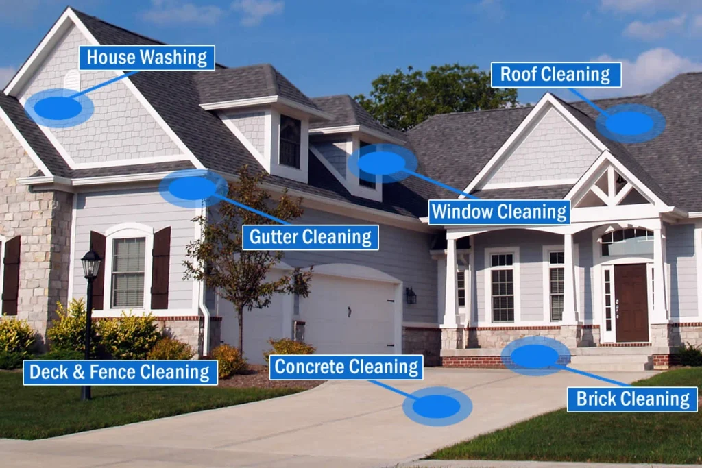 Safe, effective exterior house cleaning using low-pressure soft washing techniques that protect your home's surfaces while removing dirt, algae, and stains.
